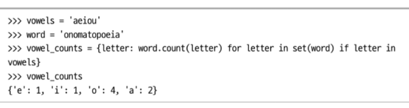 - { ν€_ννμ : κ°_ννμ for ννμ in μν κ°λ₯ κ°μ²΄ if ν μ€νΈ }
